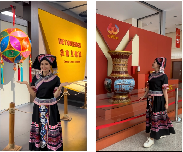 “三月三”期間,廣西民族博物館開展“桂風(fēng)壯韻三月三  中華民族一家親”活動,在現(xiàn)場可以看五彩八桂,體驗(yàn)民族風(fēng)情,探尋壯族文化起源,感受濃厚的節(jié)日氣息。