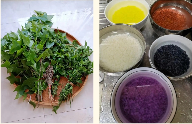 前兩期展示的糯米飯為經(jīng)過創(chuàng)意加工后的樣式,而常見的五色糯米飯,是采用天然植物染成黑、紅、黃、白、紫這5種顏色而成。