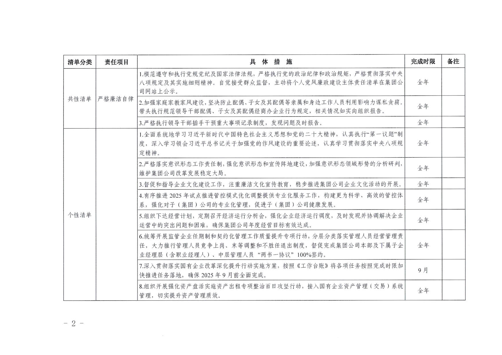 南寧交投集團領導班子其他成員2025年度黨風廉政建設“一崗雙責”清單(二)