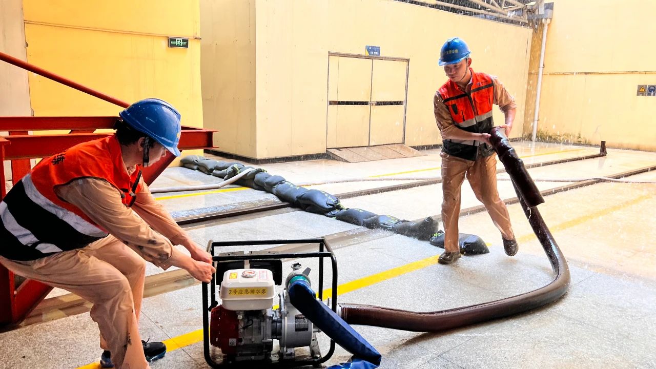 本次演練以防范應(yīng)對極端洪水及次生災(zāi)害為核心,模擬50年一遇洪水情景下,引發(fā)壩頂400V電源失壓、廠房排水溝暴雨倒灌、滲漏集水井水位過高報警3個場景,全面檢驗老口樞紐應(yīng)急隊伍防洪搶險組織、指揮協(xié)調(diào)及險情處置等綜合能力。